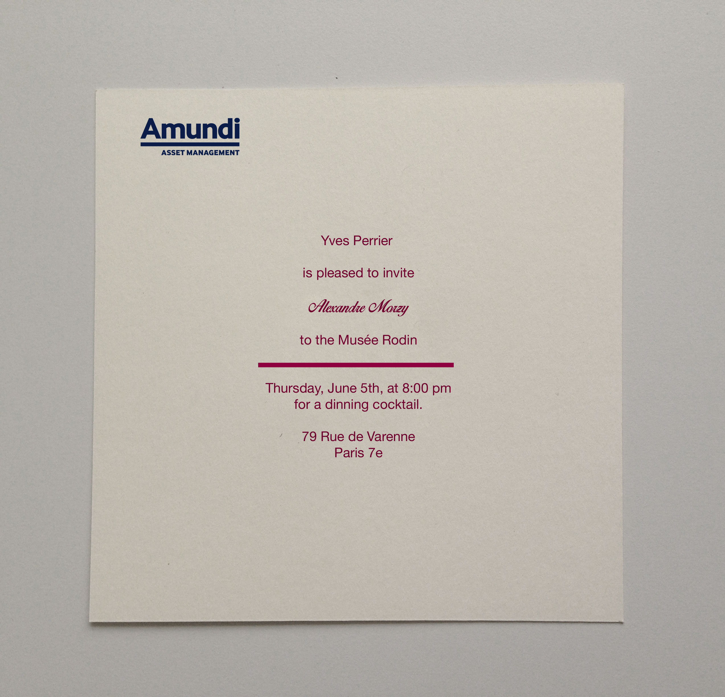 invitation pour l'evenement d'Amundi au Musée Rodin pour le compte d'Auditoire.
