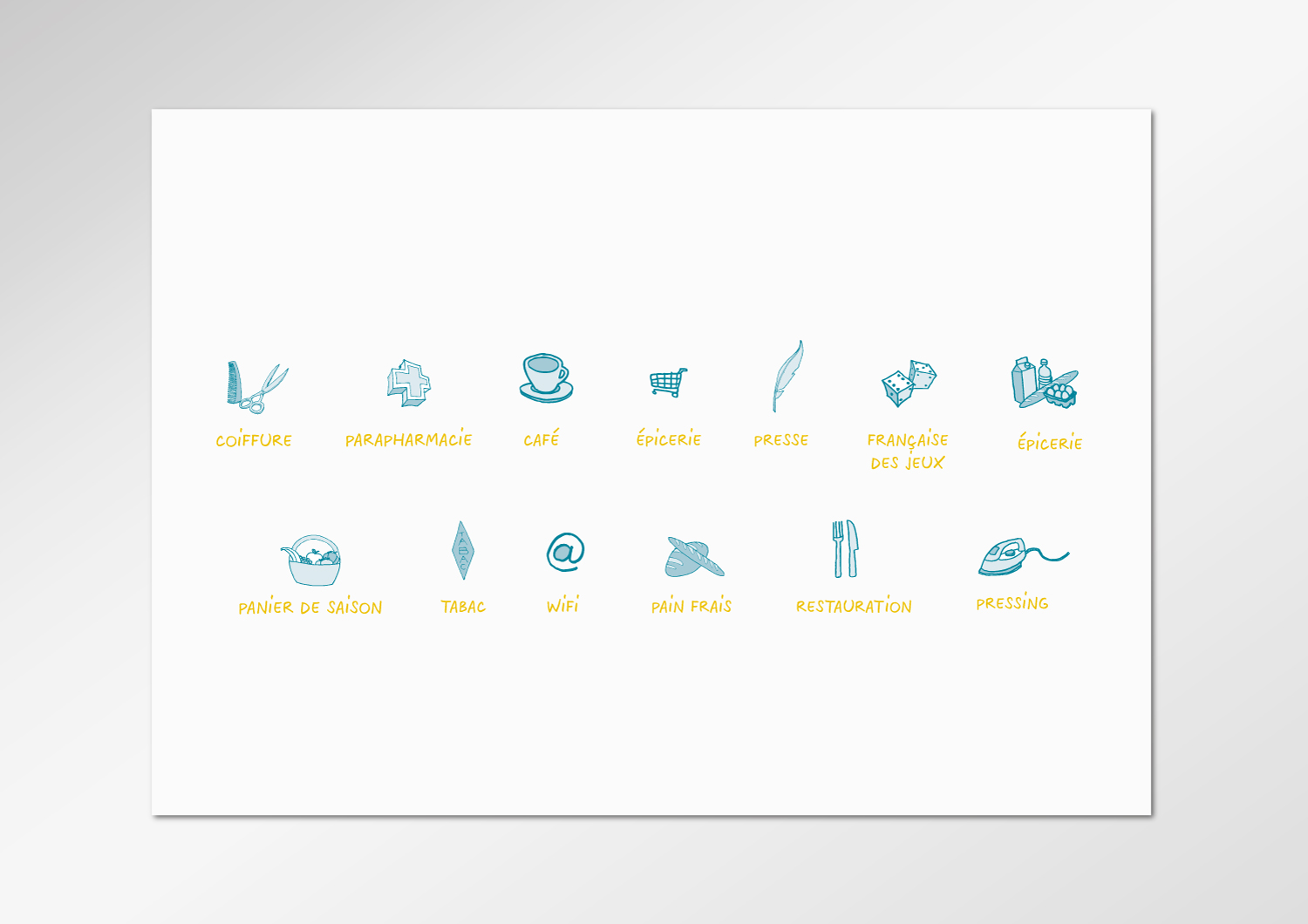 Un travail illustratif ludique au niveau des pictogrammes (cf EASY PICTO) et de la présentation du magasin offre à ce magasin de restauration rapide, la touche de convivialité du café du coin tout en renvoyant à la restauration rapide et à la finesse et la précision du geste de restauration.