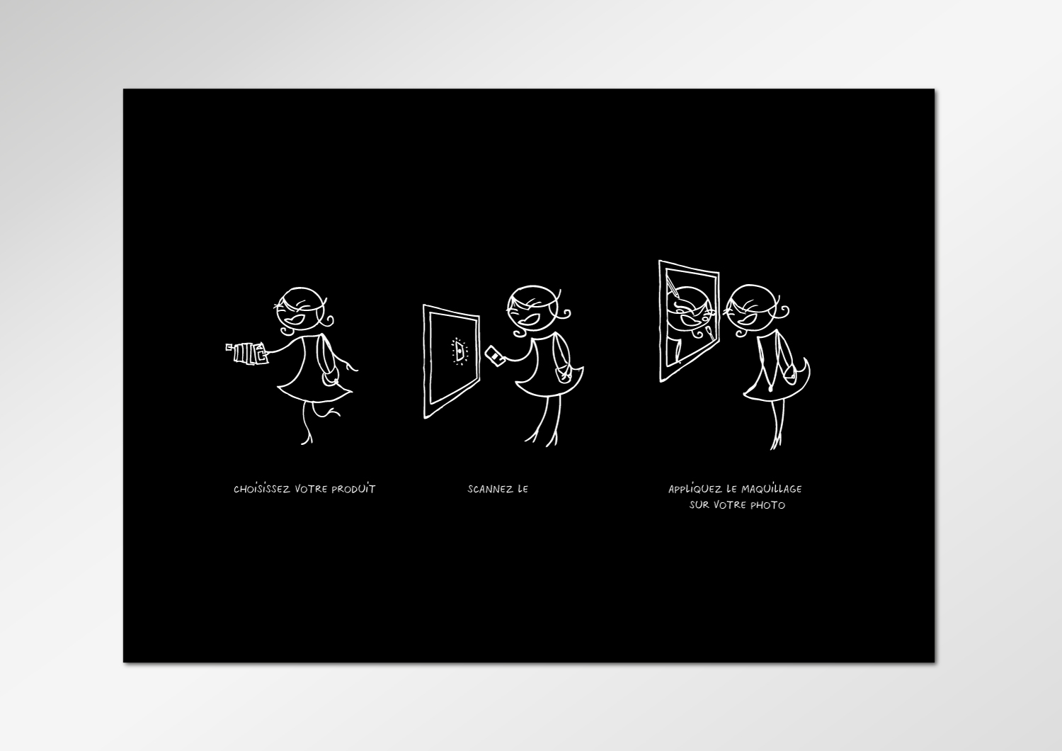 Proposition d'illustrations pour le nouveau système interactif de maquillage et autres illustrations à destination du rayon beauté.