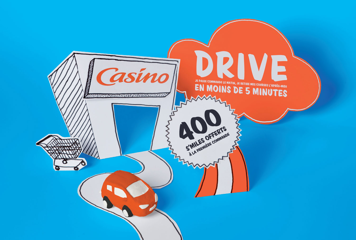 Propositions pour les couvertures des catalogues casino ainsi qu'une page promotionnelle sur les services Drive des magasins.