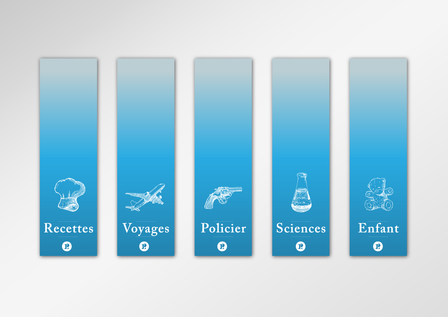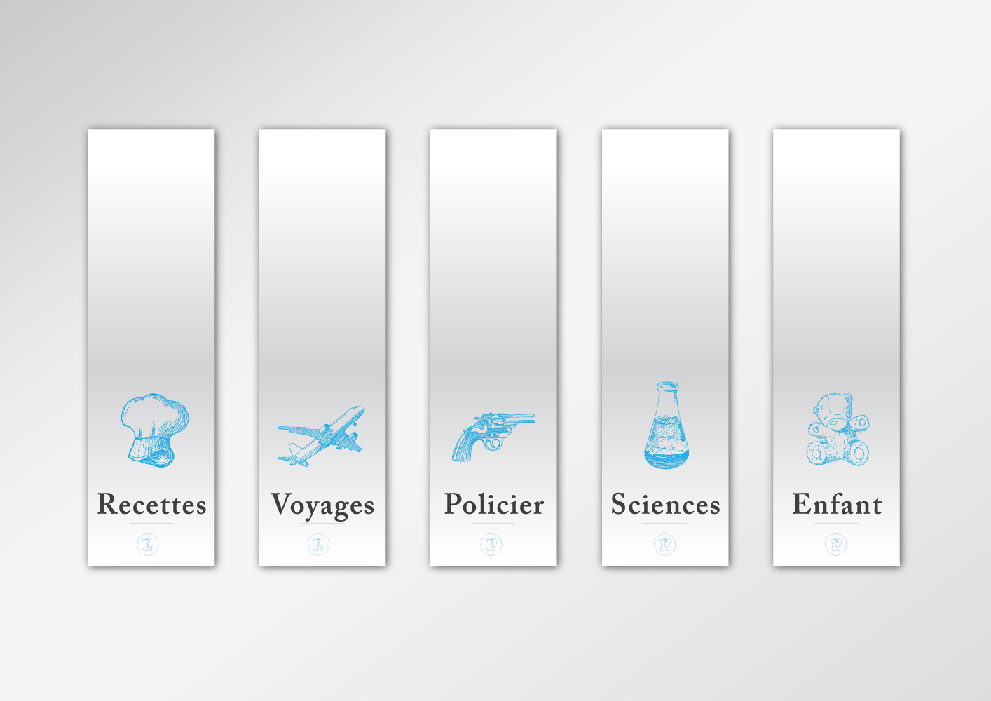 Proposition de pictogrammes et d'affichage signalétiques des différents rayons littéraires pour LECLERC-CHAMBERRY.