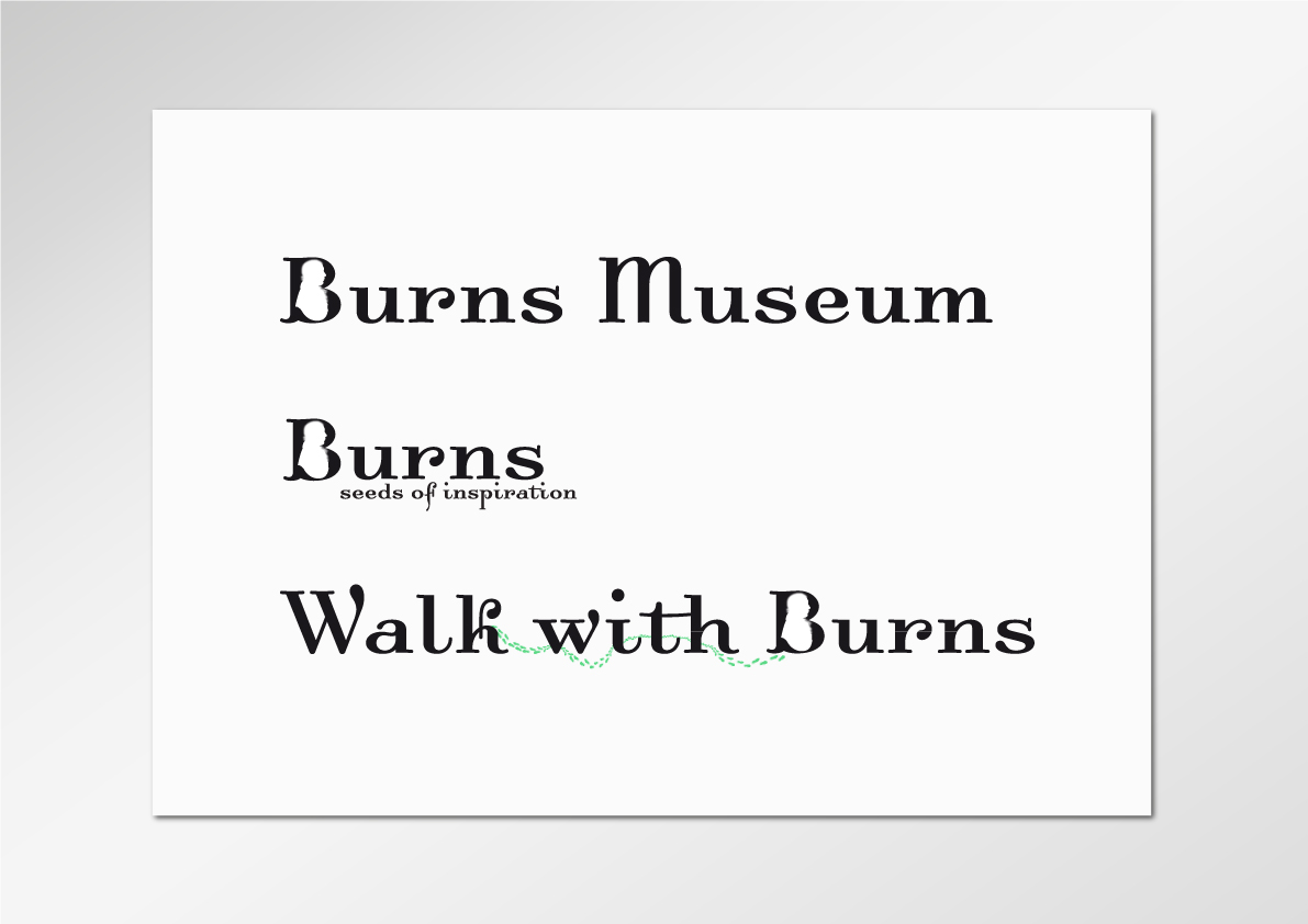 Dans cette approche, la typographie joue un rôle essentiel, ainsi, Les caractères Didot et Garamont on été choisi pour leur référence aux publications éditoriales, alliant un style de caractère ancien et moderne autant que pour leurs diversités ludique, leurs facilités d'utilisation dans le musée, mais également lié à la période de Burns.