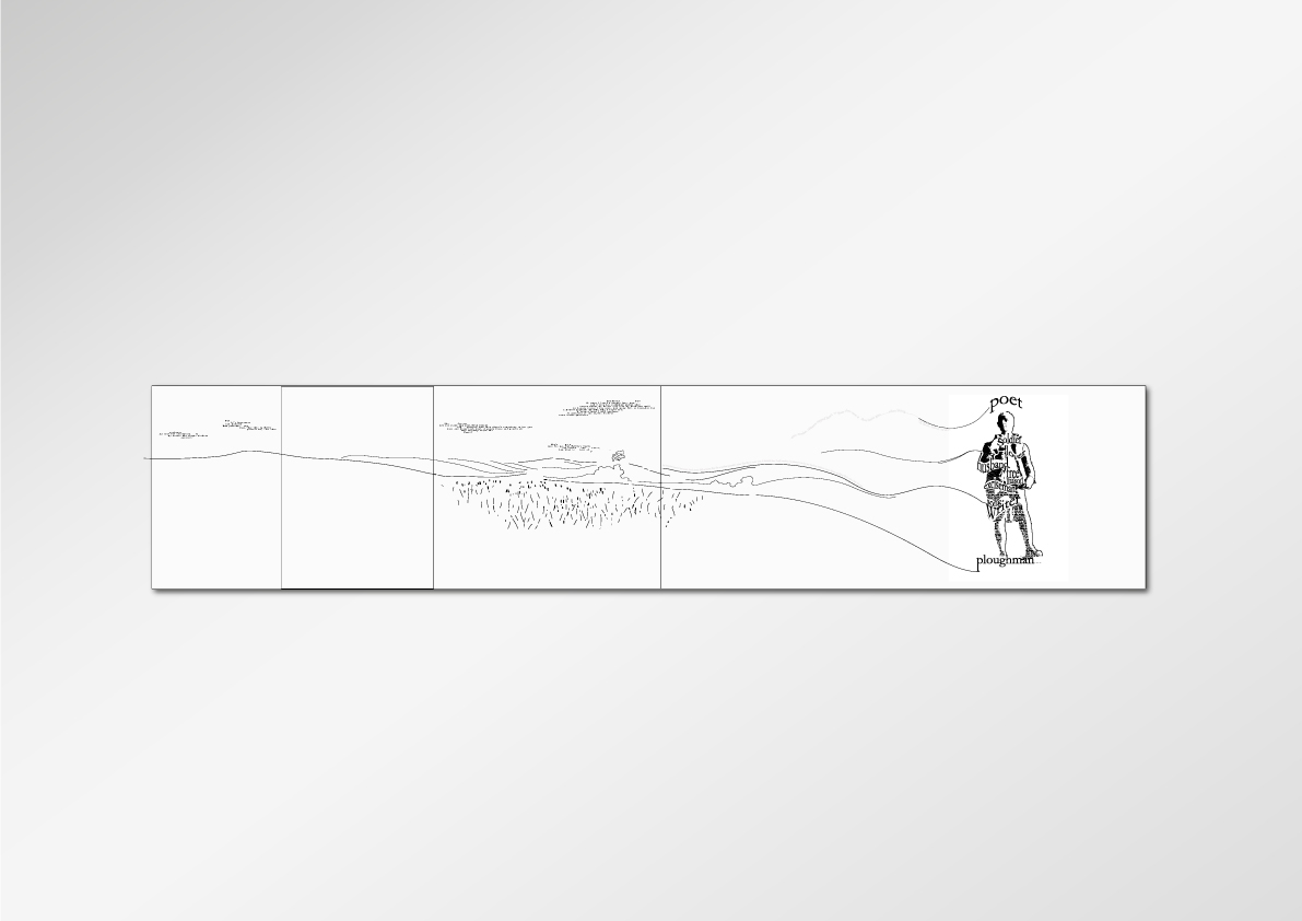 Tandis que les mots et les phrases forment un jeu de silhouettes et paysages graphiques et poétiques énumérant les différentes périodes de la vie du poète et citations de ses poèmes.