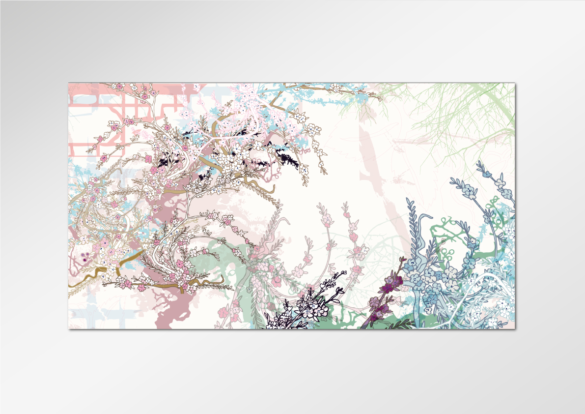 Cette scénographie incite donc à la découverte d'un univers, et propose une expérience visuelle et auditive pour rendre lisible les différentes étapes thématiques de l'exposition. Elle organise le parcours le long d'une vague graphique en filigrane dans la variation d'un souffle de couleurs.